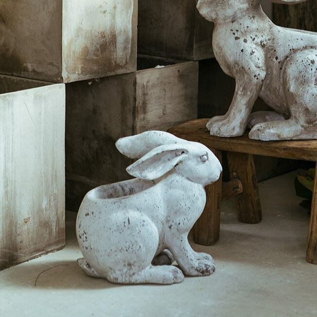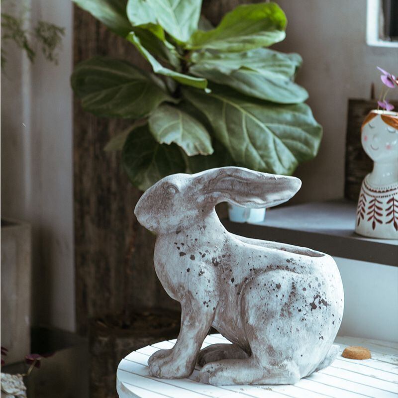 樹脂素材を使用しているため、耐久性が高く、屋外でも安心してご使用いただけます。また、うさぎの丸みを帯びたフォルムが、どこかほっこりとした気持ちを引き起こし、その存在感はインテリアのアクセントとしても目を引きます。
