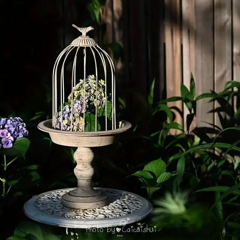 金属製の鳥かご風プランタースタンドは、あなたのガーデンスペースにヴィンテージ調の魅力をプラスします。
