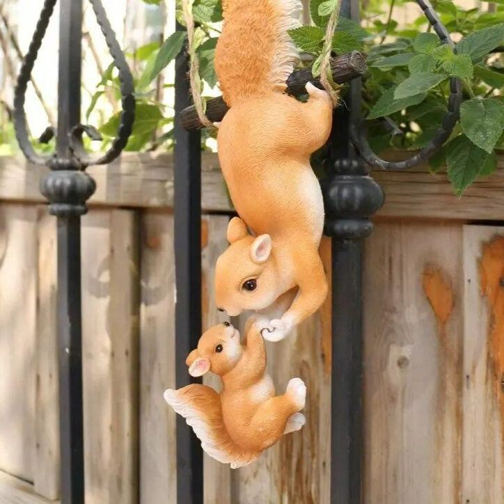 ガーデンオブジェ リス 子リス 親子 アニマル ブラウン ブランコ 壁掛けインテリア ガーデニング 雑貨 ガーデン雑貨 ガーデンインテリア ガーデン インテリア 庭の装飾 お洒落 おしゃれ 4-7