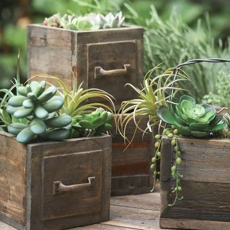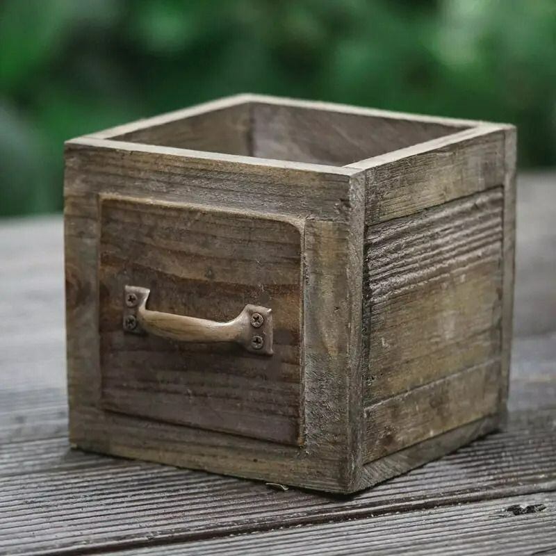プランター 鉢植え ヴィンテージ調 正方形 木製 プランターボックス 引き出しハンドル付き 寄せ植え 多肉植物 植木 フラワーポット ガーデニング 雑貨 ガーデン雑貨 ガーデンインテリア ガーデン インテリア 庭の装飾 お洒落 おしゃれ 4-7