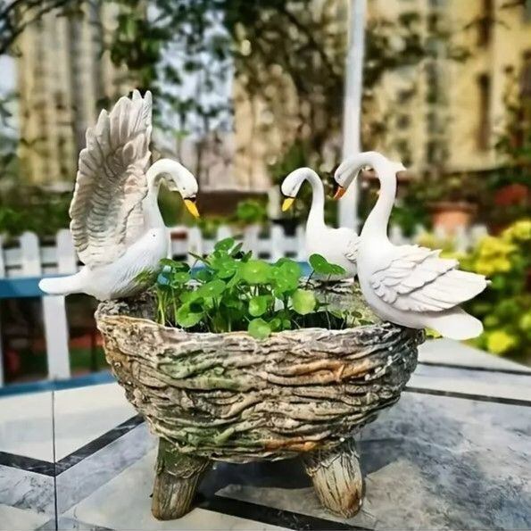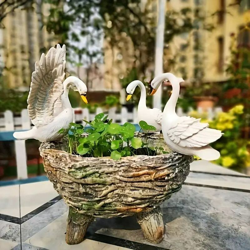 フラワーポット 白鳥 水耕 3羽 樹脂 ラウンド ガーデニング 寄せ植え プランター ガーデニング 雑貨 ガーデン雑貨 ガーデンインテリア ガーデン インテリア 庭の装飾 お洒落 おしゃれ 4-7