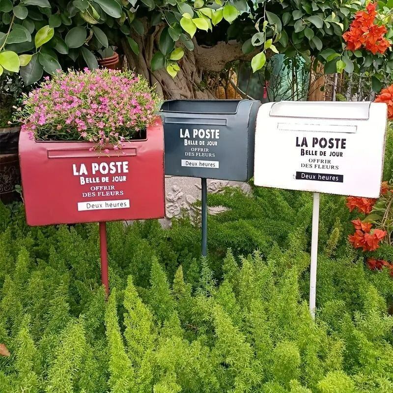 フラワースタンド ポスト型 レッド グリーン ホワイト ヨーロピアン カントリー ガーデン ヴィンテージ調 アイアン ガーデニング 雑貨 ガーデン雑貨 ガーデンインテリア ガーデン インテリア 庭の装飾 お洒落 おしゃれ 4-7