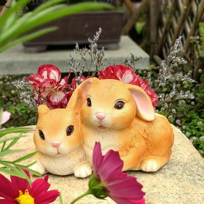 2匹のうさぎが寄り添う姿は、愛情や穏やかさを象徴し、見る人の心を和ませる優しいデザインです。うさぎは「繁栄」と「幸運」の象徴として古くから親しまれており、このプランターを通じて、あなたのガーデンに幸せを呼び込むことでしょう。