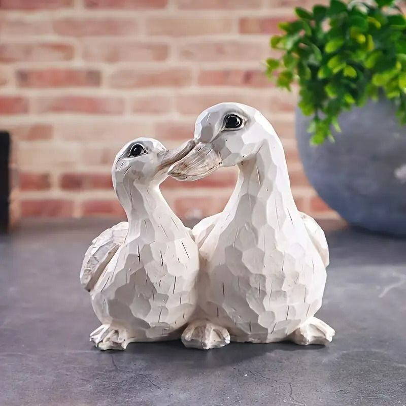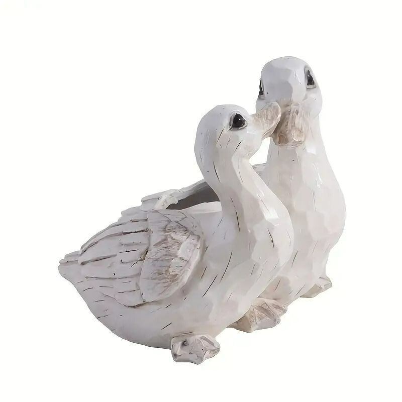 2匹のアヒルが寄り添う姿は、仲の良さや愛情を象徴しています。お花や観葉植物を飾ることで、より一層の癒しの空間を作り出すことができます。また、庭やベランダ、室内のアクセントとしてもとても魅力的です。