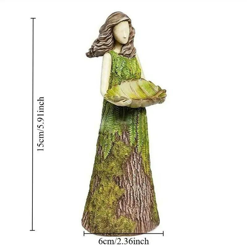 こちらのガーデンオブジェは、自然の美しさを感じさせるデザインが魅力のインテリアアイテムです。森の女神をモチーフにしたこのオブジェは、葉っぱのデザインのドレスに身を包み、自然のエネルギーを呼び寄せる存在感を放っています。