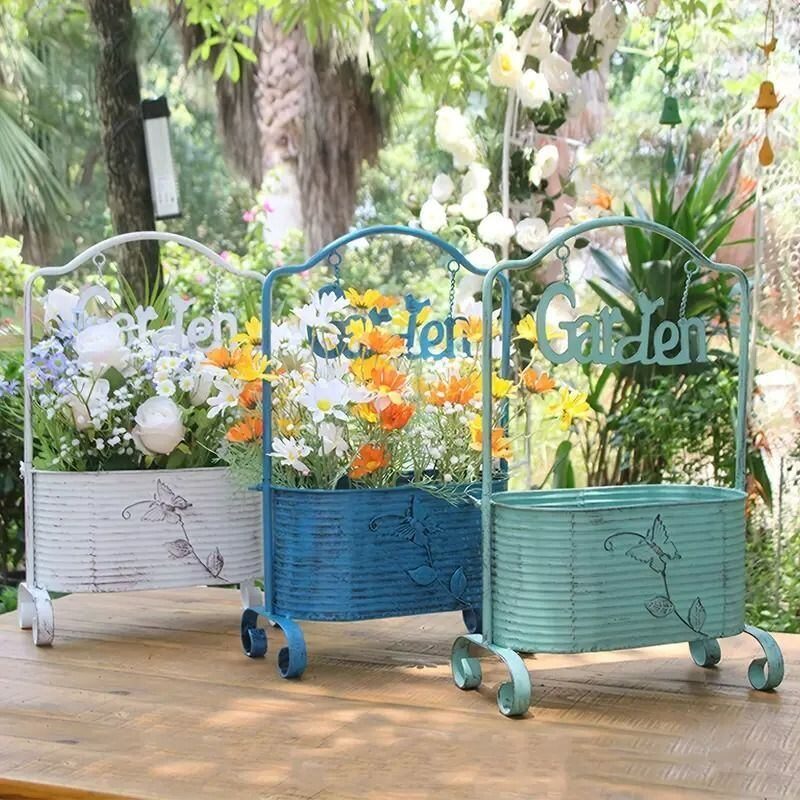 プランタースタンド ヴィンテージ調 金属 グリーン ブルー エレガント 緑 青 ポットスタンド プランター 鉢植え 寄せ植え ガーデニング 雑貨 ガーデン雑貨 ガーデンインテリア ガーデン インテリア 庭の装飾 お洒落 おしゃれ 4-7
