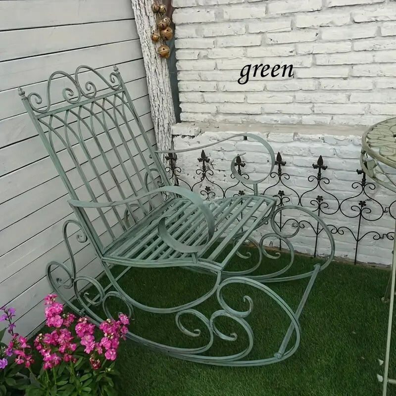 ガーデンチェア ロッキングチェア ヴィンテージ調 ホワイト グリーン 屋外 庭園 シングル アイアン 白 緑 ガーデニング 雑貨 ガーデン雑貨 ガーデンインテリア ガーデン インテリア 庭の装飾 お洒落 おしゃれ 4-7