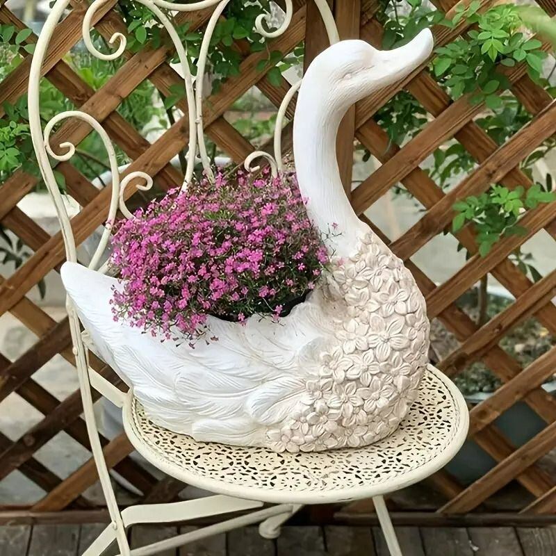 プランター 白鳥 彫刻 ホワイト 白 鳥 アニマル 花 フラワー ヴィンテージ調 レトロ調 エレガント 樹脂 ガーデニング 雑貨 ガーデン雑貨 ガーデンインテリア ガーデン インテリア 庭の装飾 お洒落 おしゃれ 4-7