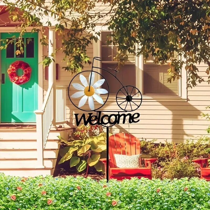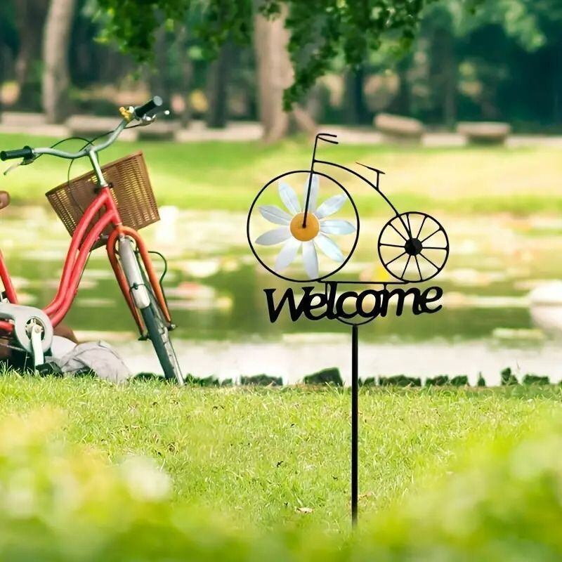 ウェルカムサイン ガーデンステーク 自転車 デイジー 花 フラワー ブラック ガーデンオブジェ 黒 かわいい ガーデニング 雑貨 ガーデン雑貨 ガーデンインテリア ガーデン インテリア 庭の装飾 お洒落 おしゃれ 4-7