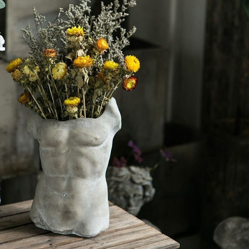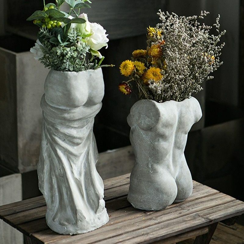 フラワーポット セメント ヨーロッパ風 彫刻 グレー 女性 男性 灰色 花瓶 エレガント ガーデニング 雑貨 ガーデン雑貨 ガーデンインテリア ガーデン インテリア 庭の装飾 お洒落 おしゃれ 8-14