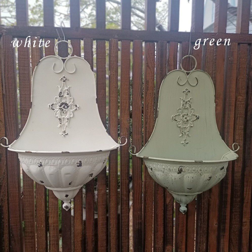 プランター 壁掛け 金属 ホワイト グリーン ヴィンテージ調 シャビー加工 シャビーシック レトロ調 ヨーロピアン エレガント ガーデニング 雑貨 ガーデン雑貨 ガーデンインテリア ガーデン インテリア 庭の装飾 お洒落 おしゃれ 8-14