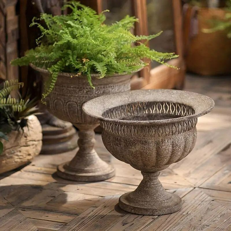 このフラワーポットは、ヴィンテージ調のアメリカンデザインで、あなたの庭やガーデンに特別な暖かさをもたらすアイテムです。アイアン素材で作られたこのポットは、頑丈でありながらも美しさを兼ね備えた魅力的な仕上がりとなっています。空間に自然の美しさと独自の個性を加えて、植えた花々を一層引き立てることでしょう。