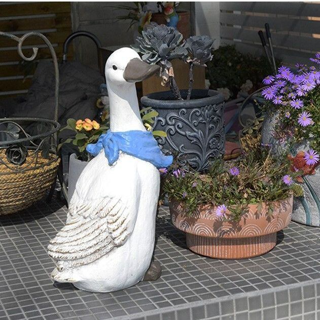 ガーデンオブジェ アヒル 青 スカーフ 酸化マグネシウム ダック アニマル 置物 鳥 ガーデンデコ ガーデニング 雑貨 ガーデン雑貨 ガーデンインテリア ガーデン インテリア 庭の装飾 お洒落 おしゃれ 8-14