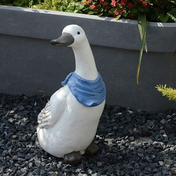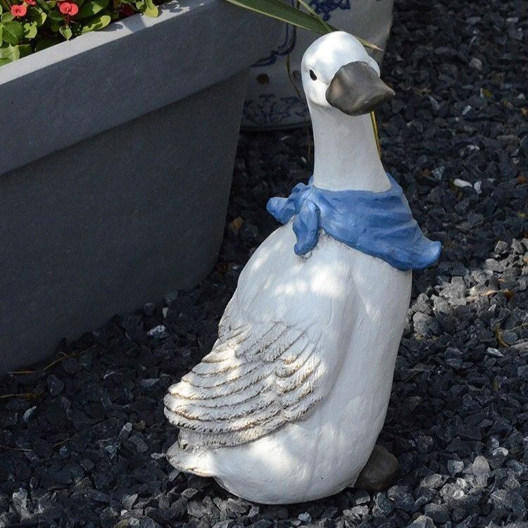 青いスカーフを巻いたアヒルは、人々に楽しい印象を与え、日々の生活に彩りを加える特別なアイテムです。庭やお部屋を華やかにし、日常の中でほっこりとしたひとときを提供するかもしれません。