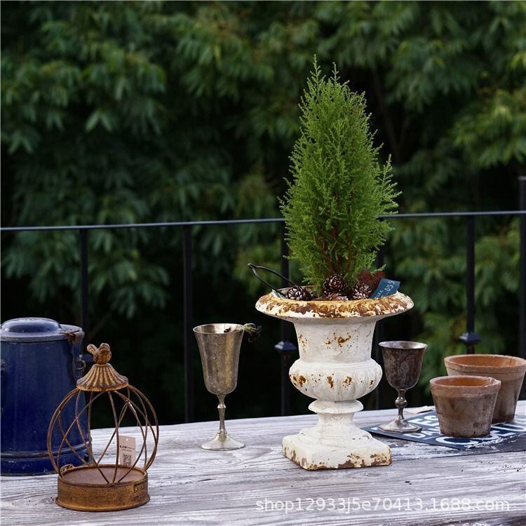 植木鉢 ヴィンテージ調 ホワイト 酸化マグネシウム シャビー加工 フラワーポット 鉢植え プランター シャビーシック ガーデニング 雑貨 ガーデン雑貨 ガーデンインテリア ガーデン インテリア 庭の装飾 お洒落 おしゃれ 8-14