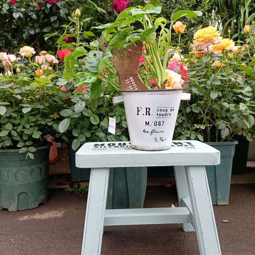 こちらのプランターは、金属製で排水穴がついているため、植物の育成に最適なアイテムです。ヴィンテージ調のホワイトとブルーの2カラー展開で、おしゃれでありながら実用性も兼ね備えたデザインが魅力です。植物を育てるスペースを彩るだけでなく、インテリアとしても引き立ちます。