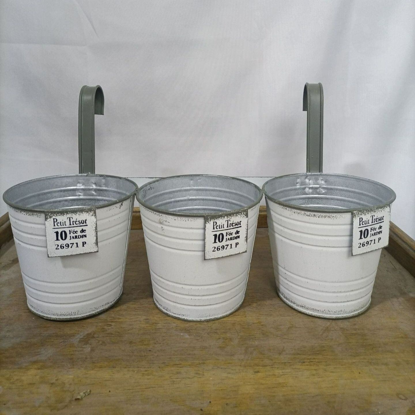 プランター バケツ ハンキング 吊るす ホワイト ヴィンテージ調 金属 白 シャビー加工 シャビーシック ガーデニング 雑貨 ガーデン雑貨 ガーデンインテリア ガーデン インテリア 庭の装飾 お洒落 おしゃれ 8-14