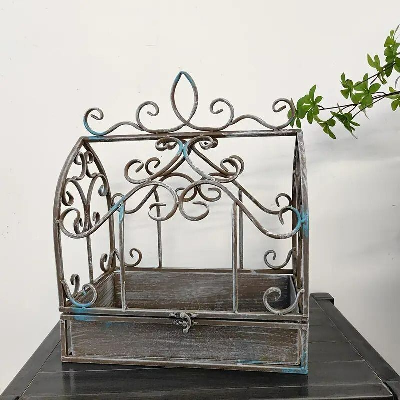 こちらの商品は、独特のデザインと高い実用性を兼ね備えたアイテムです。鳥かごを模した優雅な立ち姿が、インテリアに自然の息吹をもたらし、心を豊かにする空間を演出します。シャビー加工が施されており、古びた風合いが魅力的。これにより、どんなインテリアスタイルにもマッチします。