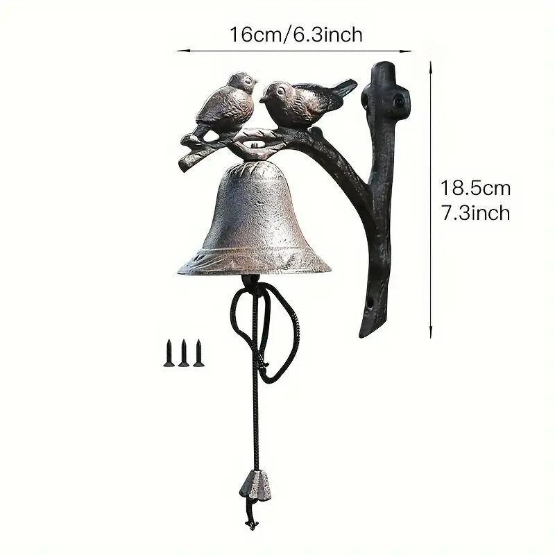 こちらのハンドベルは、鋳鉄製の華やかなデザインが特徴のアイテムです。愛らしい2羽の鳥がデザインされたこの鐘は、見る人の心を和ませ、温かい雰囲気を演出します。庭やガーデンにピッタリの装飾品として、自然の中に美しいアクセントを加えることができます。