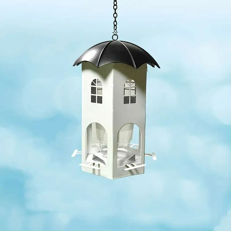 スタイリッシュなホワイトボディと、傘のような屋根が特徴のバードフィーダーは、バードウォッチングを楽しむ方に最適なアイテムです。メタル素材で製作されており、耐久性にも優れていますので、季節を問わずお使いいただけます。このフィーダーは、あなたの庭やバルコニーに美しさを添え、可愛い野鳥たちを引き寄せることが期待できるでしょう。