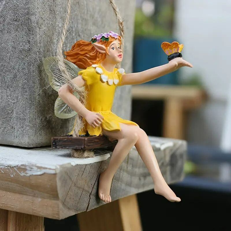 ガーデンオーナメント 妖精 吊り下げ式 イエロー 可愛い 庭 ガーデンデコ スイング 樹脂 フェアリー ガーデニング 雑貨 ガーデン雑貨 ガーデンインテリア ガーデン インテリア 庭の装飾 お洒落 おしゃれ 4-7