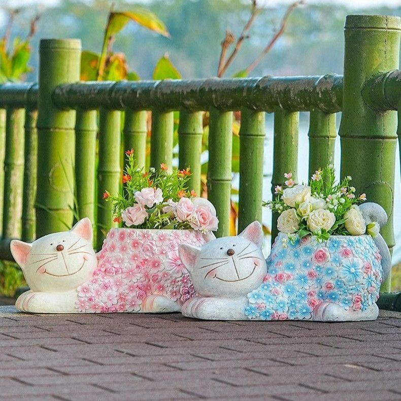 プランター ネコ 猫 かわいい 彫刻 高強度酸化マグネシウム ピンク ブルー 青 ねこ キャット アニマル 寄せ植え 植木鉢 ガーデニング 雑貨 ガーデン雑貨 ガーデンインテリア ガーデン インテリア 庭の装飾 お洒落 おしゃれ 8-14