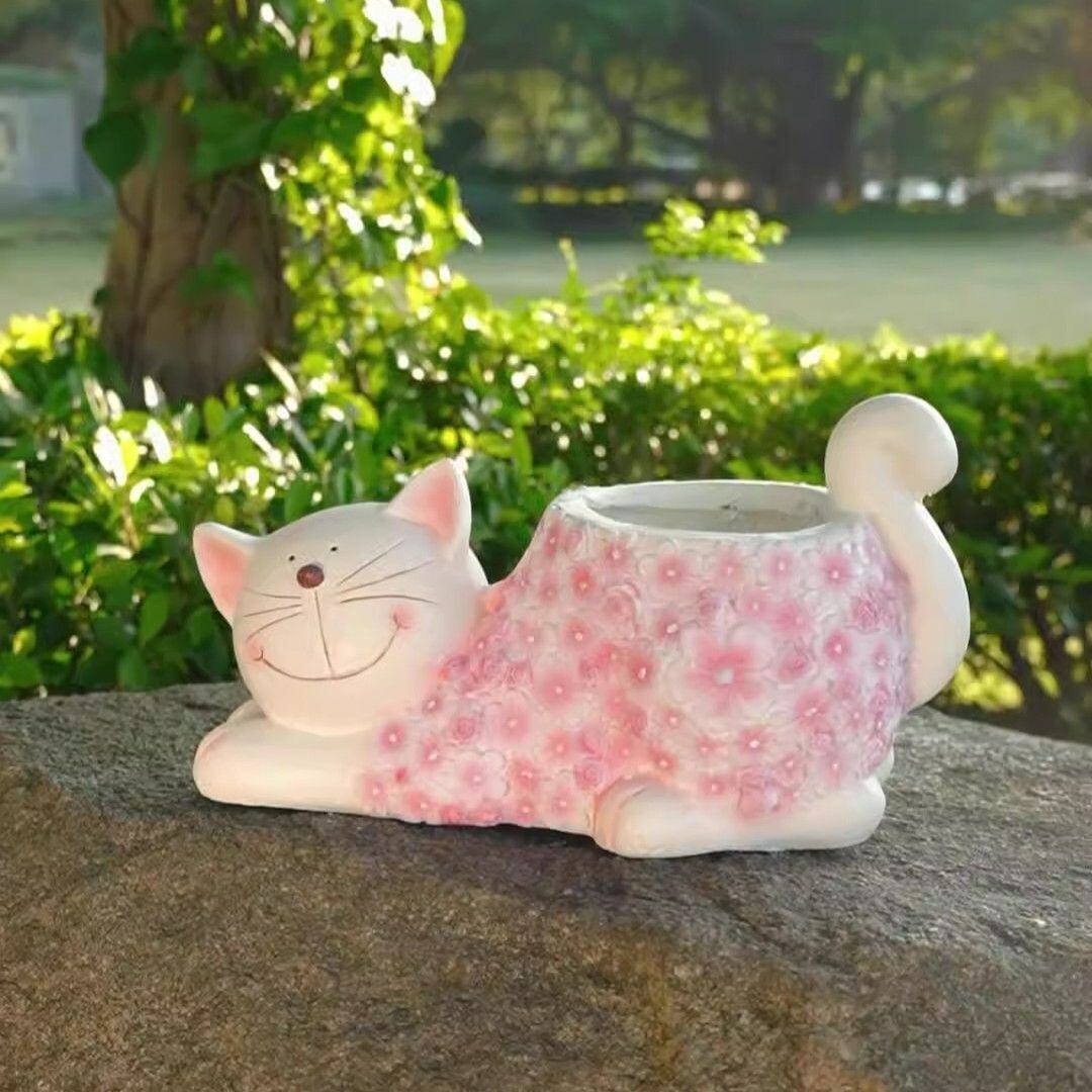 ただの植物の容器ではなく、お庭の雰囲気を一新する存在となり、毎日の生活に彩りを加えてくれることでしょう。愛らしい猫の姿があなたの心に癒しを与え、植物と共に成長する喜びを感じさせてくれます。