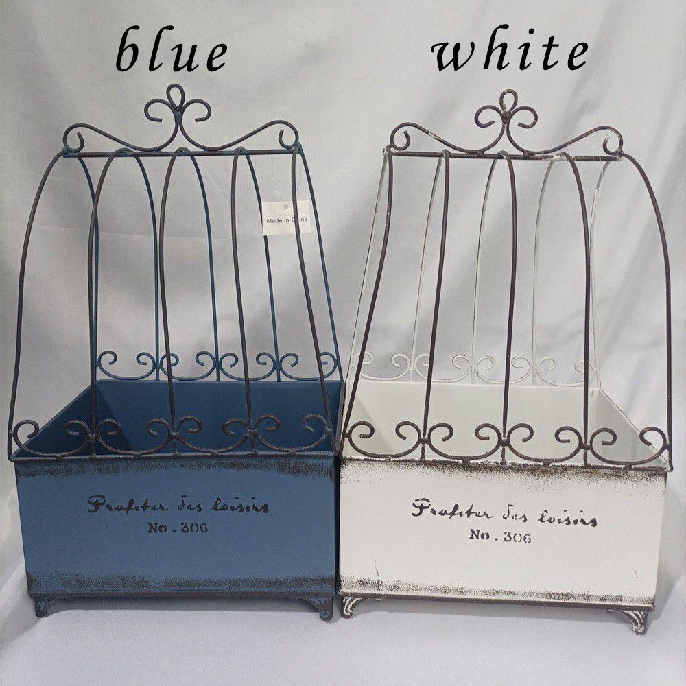 プランターラック ヴィンテージ調 レトロ ブルー ホワイト 鉄 フランス風 アイアン ナチュラル ガーデニング 雑貨 ガーデン雑貨 ガーデンインテリア ガーデン インテリア 庭の装飾 お洒落 おしゃれ 8-14