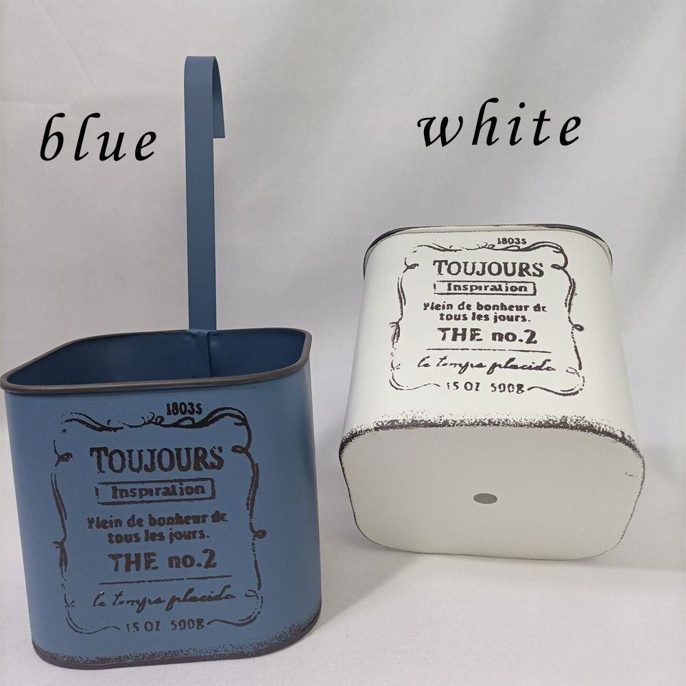 プランター コンパクト 壁掛け 引っ掛けられる レトロ ヴィンテージ調 金属 ホワイト ブルー スクエア ガーデニング 雑貨 ガーデン雑貨 ガーデンインテリア ガーデン インテリア 庭の装飾 お洒落 おしゃれ 8-14