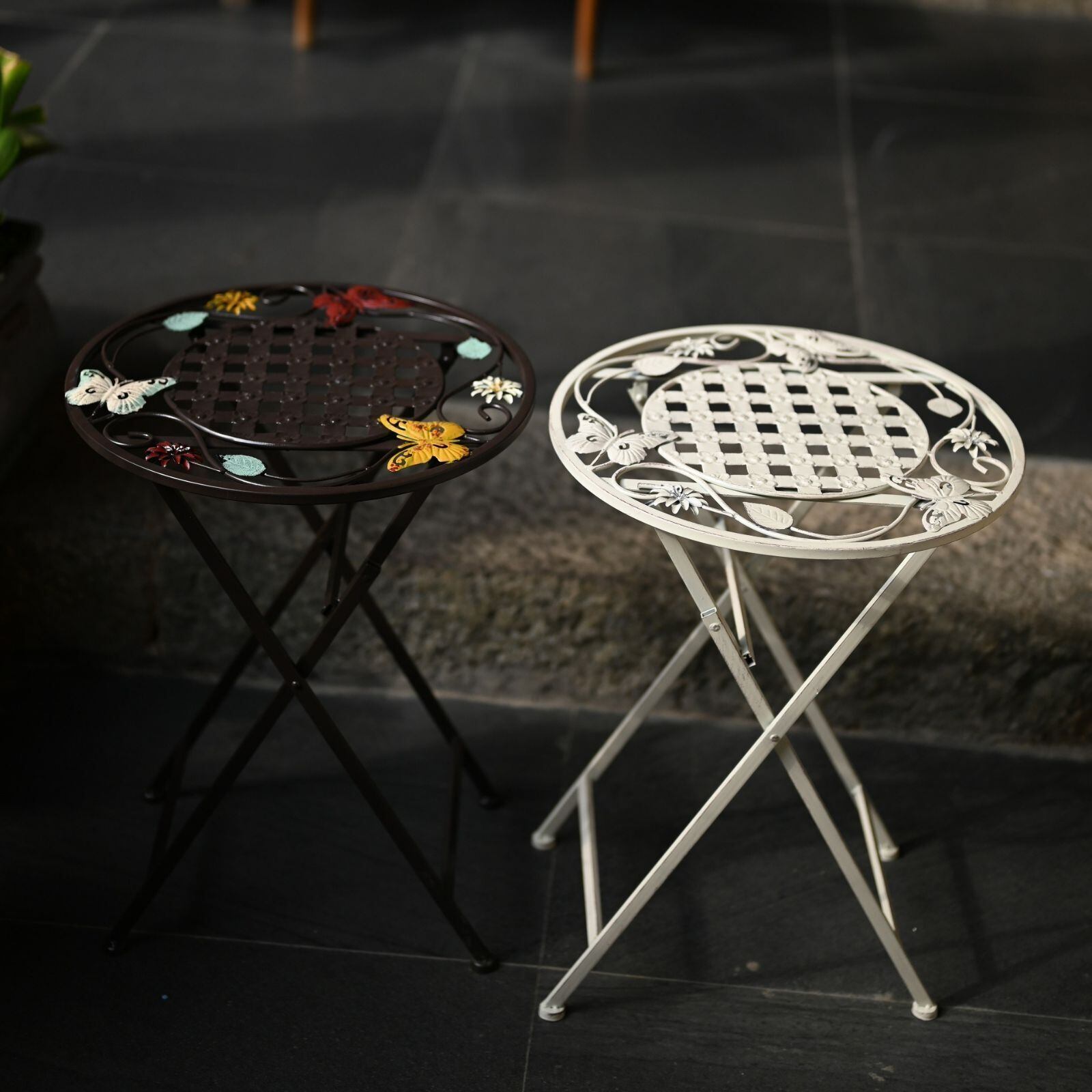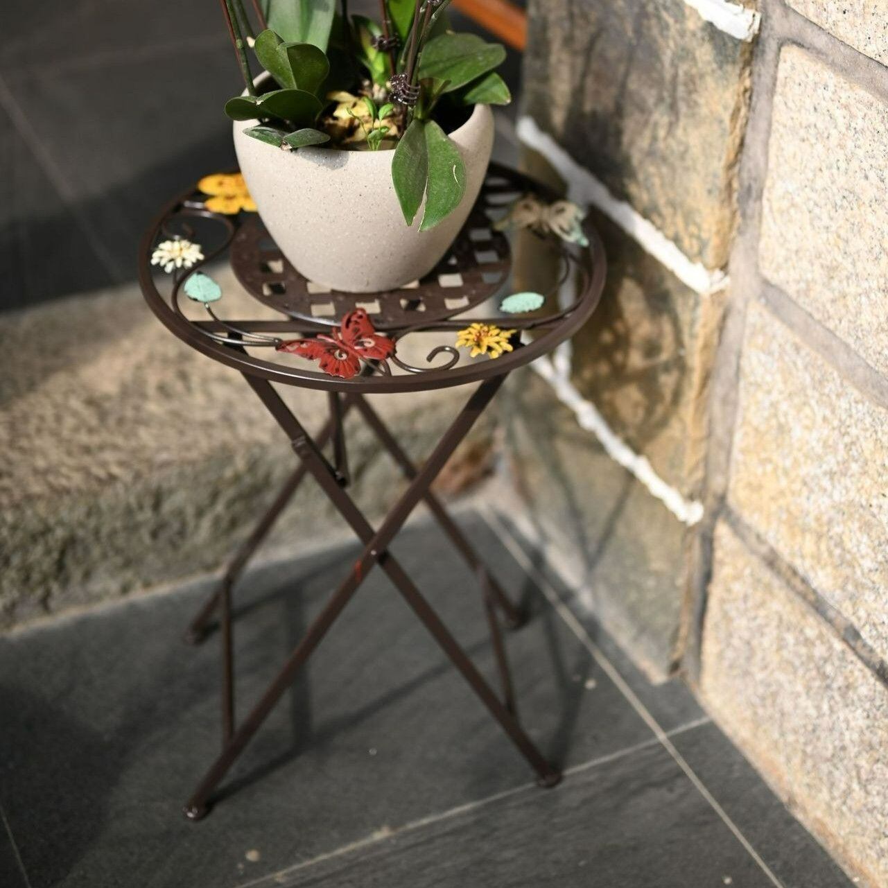 フラワースタンド ヴィンテージ調 ラウンド ホワイト ブラウン バタフライ 蝶 金属 ガーデニング 雑貨 ガーデン雑貨 ガーデンインテリア ガーデン インテリア 庭の装飾 お洒落 おしゃれ 8-14