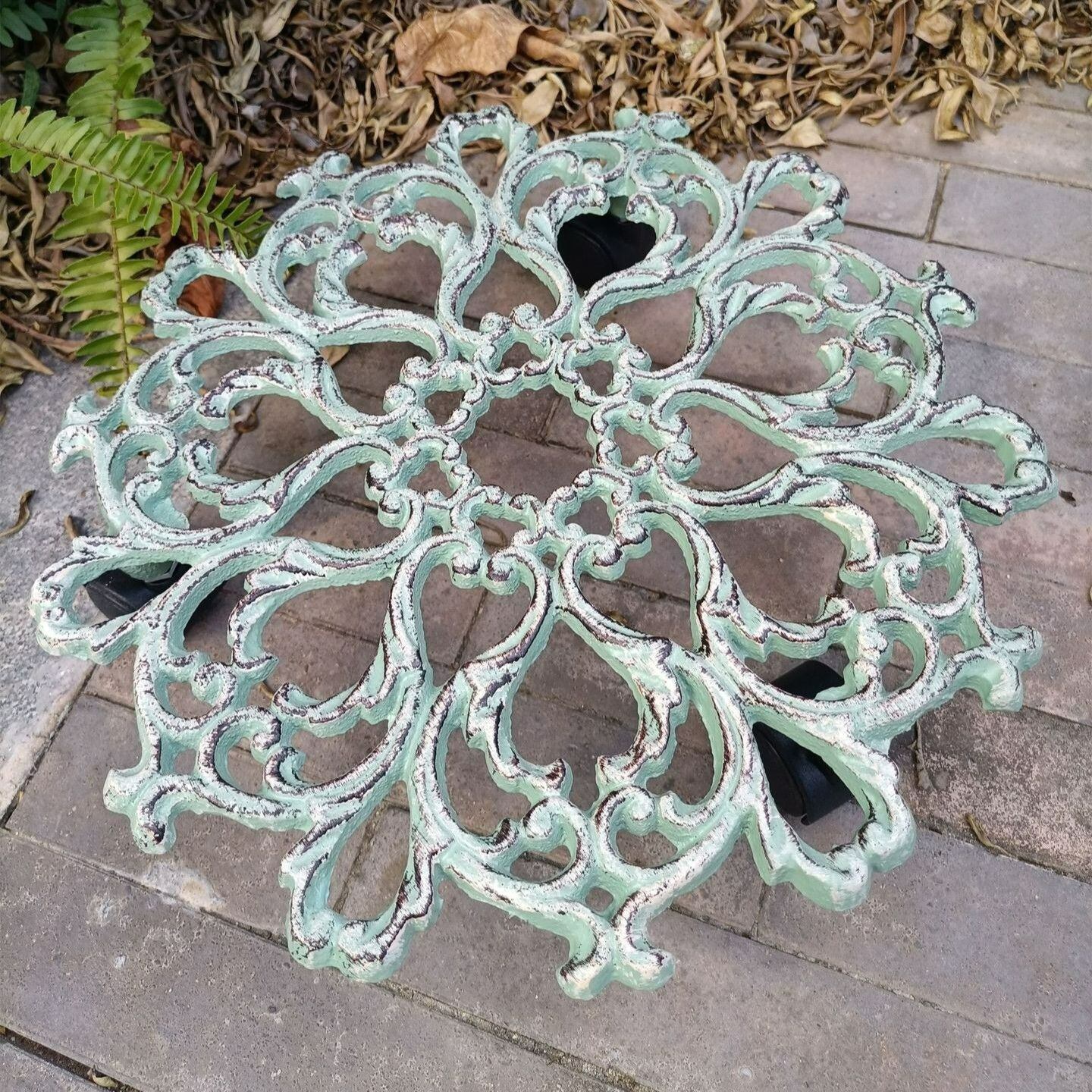 フラワースタンド 鋳鉄製 ヴィンテージ調 グリーン ゴールド キャスター付き 可動式 ガーデニング 雑貨 ガーデン雑貨 ガーデンインテリア ガーデン インテリア 庭の装飾 お洒落 おしゃれ 8-14