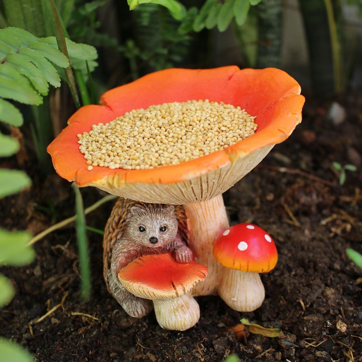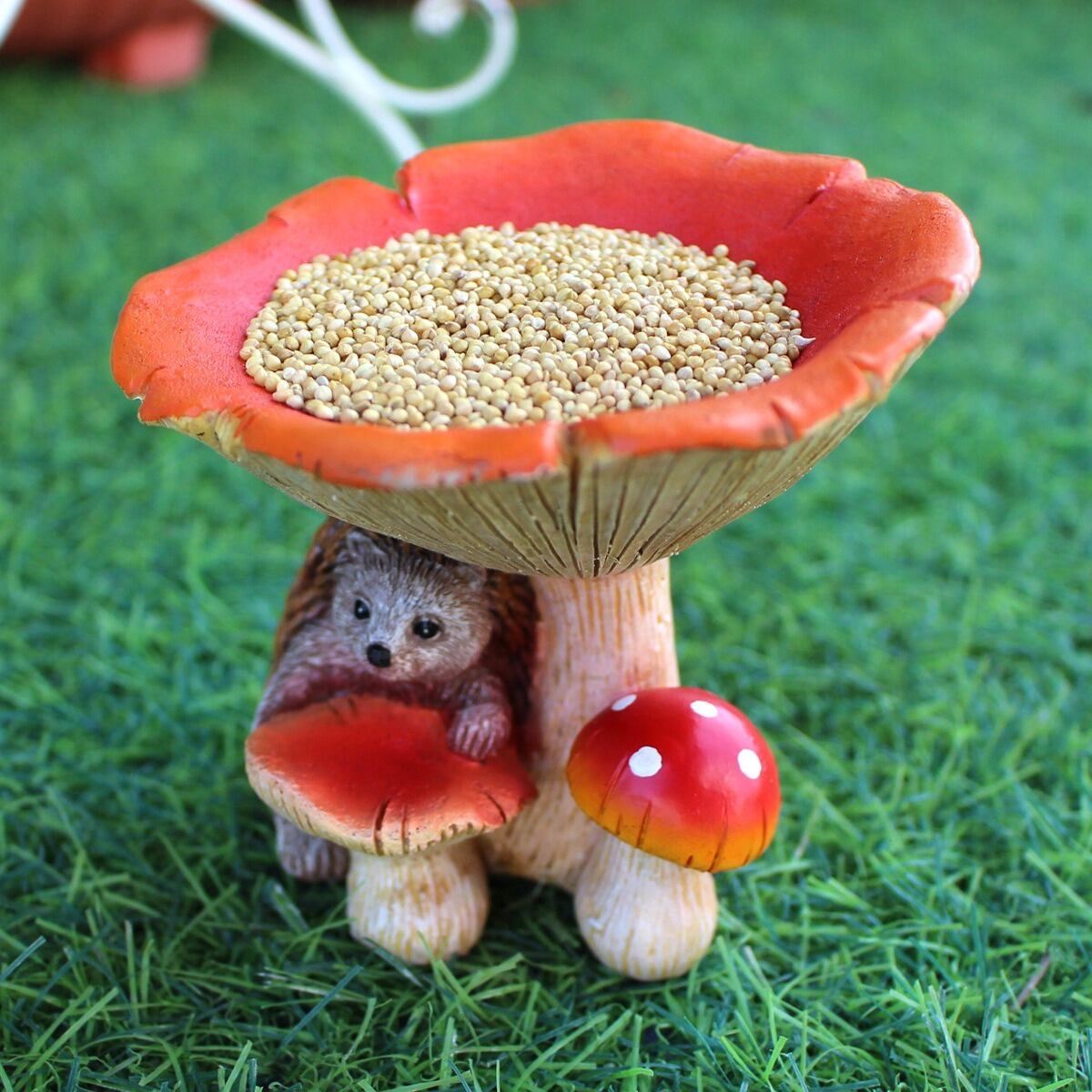 ハリネズミとキノコのコンビネーションは、庭やアウトドア空間に遊び心と夢のある雰囲気をもたらします。友人や家族への贈り物としても大変喜ばれる一品です。小さな生き物たちが集まるこのバードフィーダーは、あなたの大切な空間に楽しいアクセントを加えてくれることでしょう。