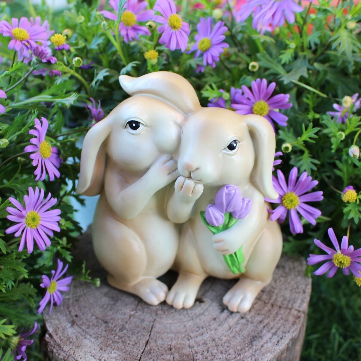 愛らしいデザインと心温まる雰囲気を持つ庭の装飾アイテムです。2匹のうさぎが寄り添う姿は、友情や無条件の愛を象徴しており、見る人の心に安らぎを与えます。このオブジェは、あなたの庭やベランダに和やかな雰囲気をプラスし、訪れた人々を笑顔にすることでしょう。