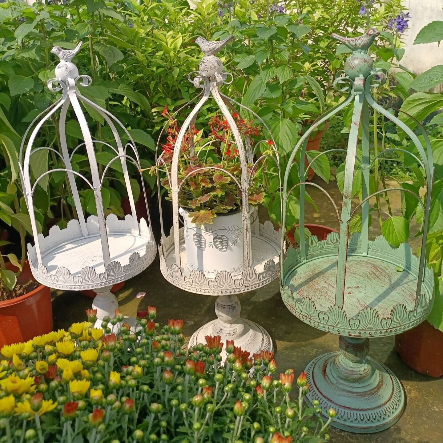 プランタースタンド ヴィンテージ調 シャビーシック 金属素材 ホワイト グレー グリーン ガーデニング 雑貨 ガーデン雑貨 ガーデンインテリア ガーデン インテリア 庭の装飾 お洒落 おしゃれ 8-14