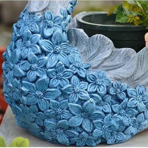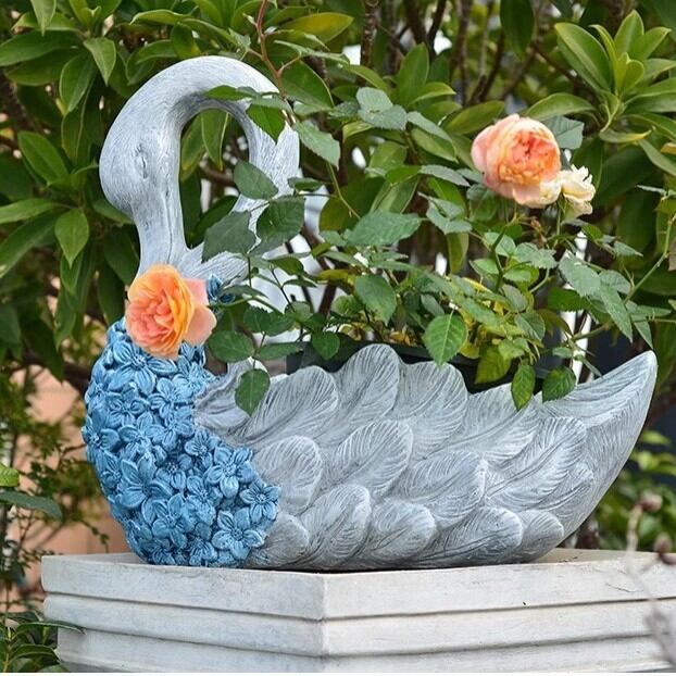 優雅な白鳥とブルーの花の姿が、どんな庭やインテリアにも華やかさと落ち着きをもたらし、青い花々を優しく包み込みます。白鳥は、愛や美しさの象徴としても知られており、このプランターはそれを表現する素晴らしいアイテムです。