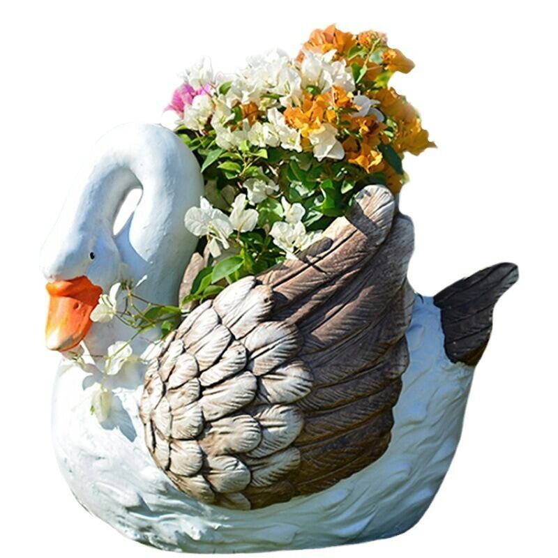 プランター 白鳥 白 茶色 酸化マグネシウム素材 ブラウン ホワイト 鉢植え 植木鉢 フラワーポット ガーデニング 雑貨 ガーデン雑貨 ガーデンインテリア ガーデン インテリア 庭の装飾 お洒落 おしゃれ 8-14