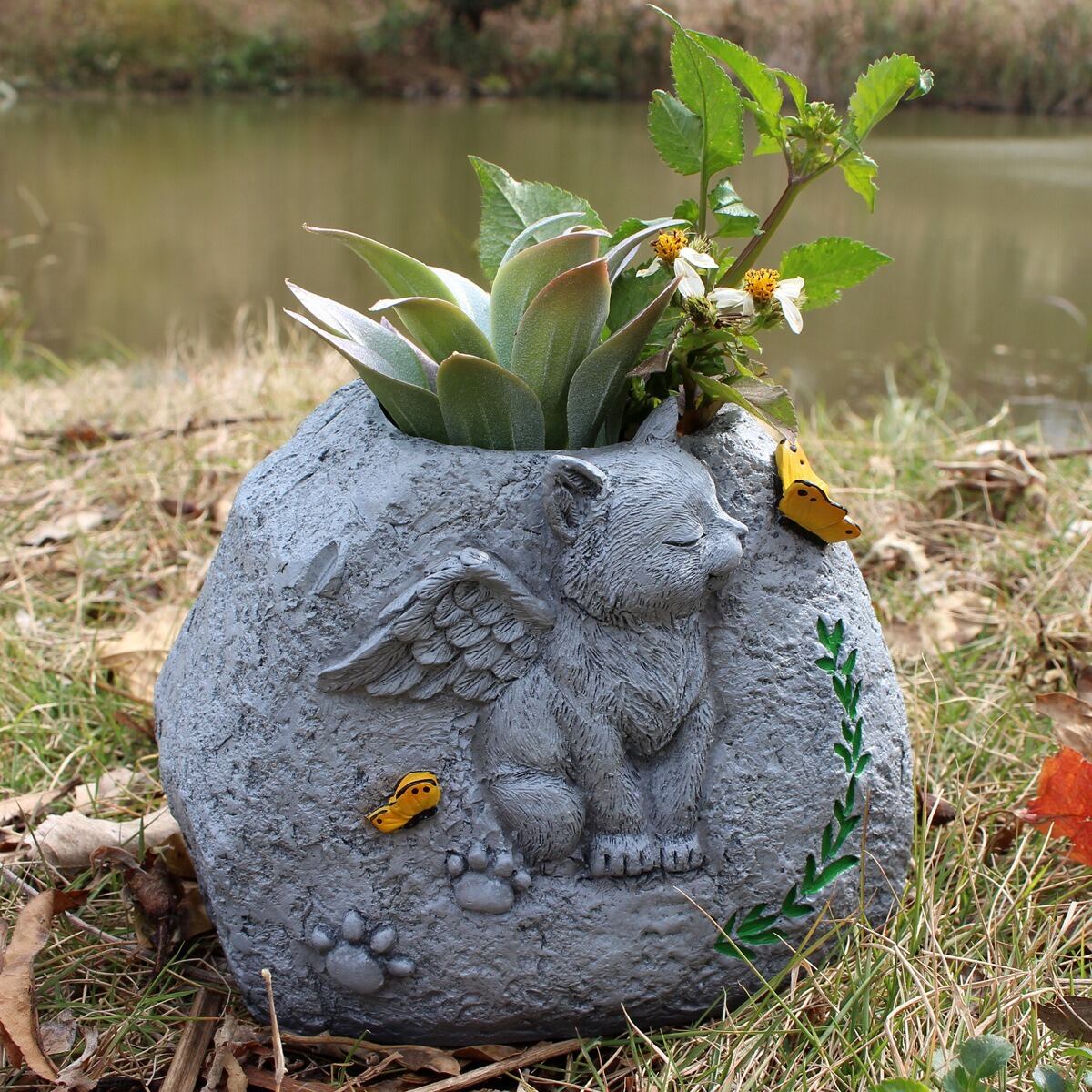 プランター 猫 ネコ 樹脂 グレー 蝶 ガーデンオブジェ 彫刻 ねこ 天使 ガーデニング 雑貨 ガーデン雑貨 ガーデンインテリア ガーデン インテリア 庭の装飾 お洒落 おしゃれ 8-14