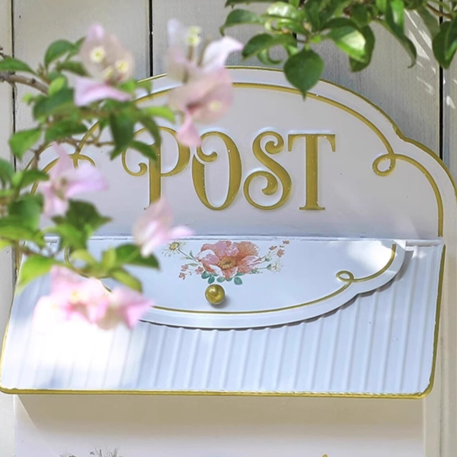 ガーデンオブジェ 郵便受け ポスト ホワイト ヴィンテージ調 花模様 庭 玄関 鉄 花柄 ヨーロッパ風 ガーデニング 雑貨 ガーデン雑貨 ガーデンインテリア ガーデン インテリア 庭の装飾 お洒落 おしゃれ 8-14