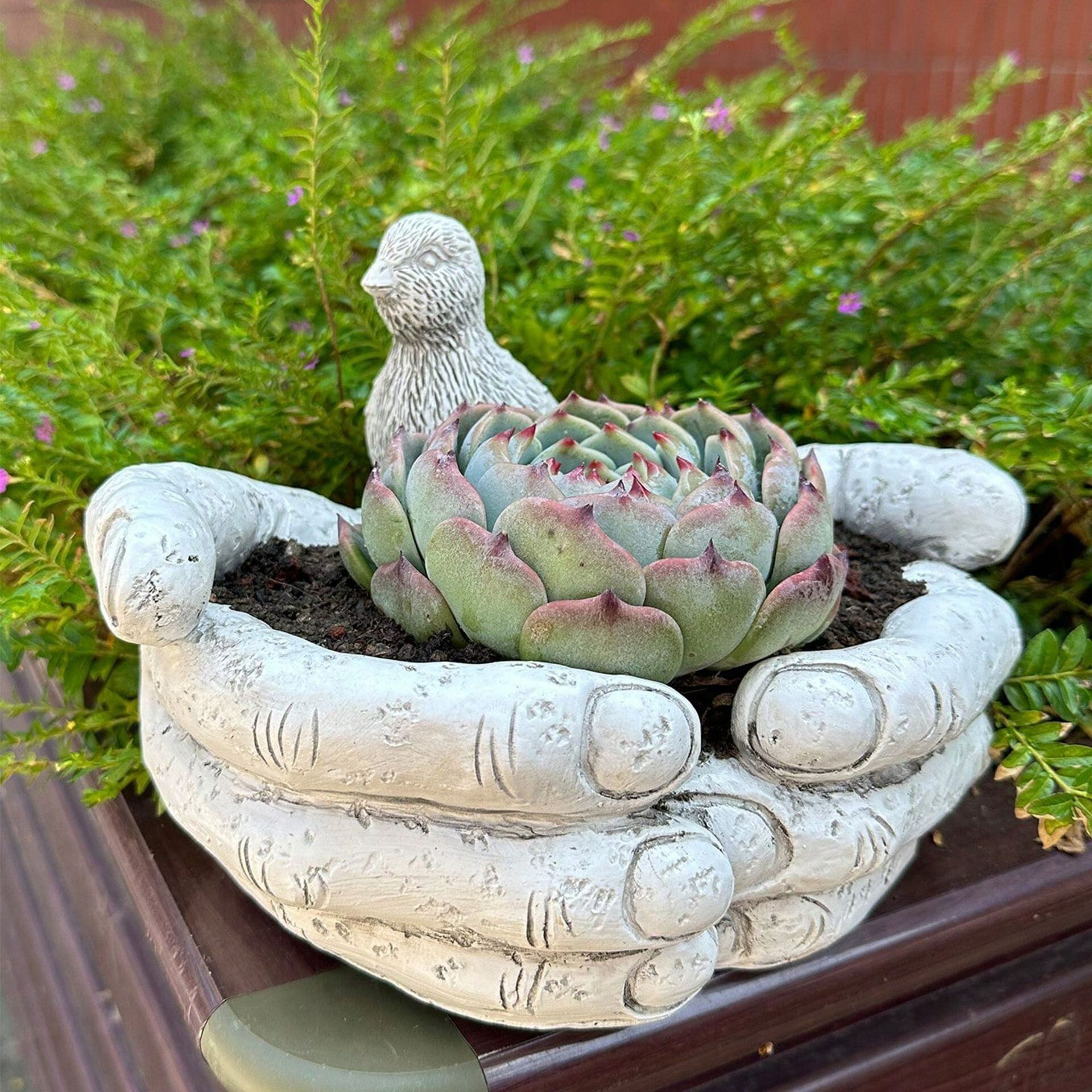 このプランターは、手の形をしたユニークなデザインと、鳥の彫刻が施されたヴィンテージ調の逸品です。庭やバルコニーに華やかさを加えるだけでなく、植物との調和を楽しむことができます。手の形は、サポートや育みを象徴し、あなたの愛情を込めた植物の成長を見守る存在としてぴったりです。