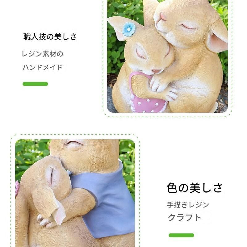 このオブジェは、庭や玄関先に置くことで、見る人にぽかぽかとした温もりを感じさせ、穏やかな空間を演出します。また、風水では、動物のモチーフは運を呼び込むとされ、特にファミリーや友人との絆を深める助けとなるとされています。あなたの大切な場所にこのうさぎたちを飾り、日常に小さな幸せをもたらしてみてはいかがでしょうか。