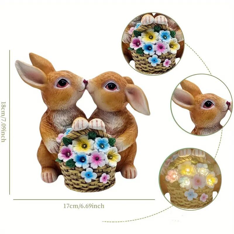 ガーデンライト うさぎ 2匹 お花のバスケット ソーラー ガーデニング 雑貨 ガーデン雑貨 ガーデンインテリア ガーデン インテリア 庭の装飾 お洒落 おしゃれ 4-7