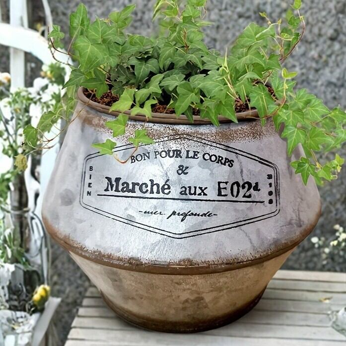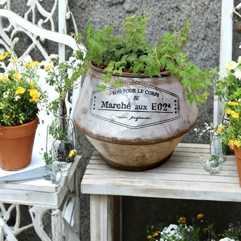 プランター 金属 漆塗り 2カラー お洒落な英字 庭 ヴィンテージ調 シャビーシック ガーデニング 雑貨 ガーデン雑貨 ガーデンインテリア ガーデン インテリア 庭の装飾 お洒落 おしゃれ 4-7
