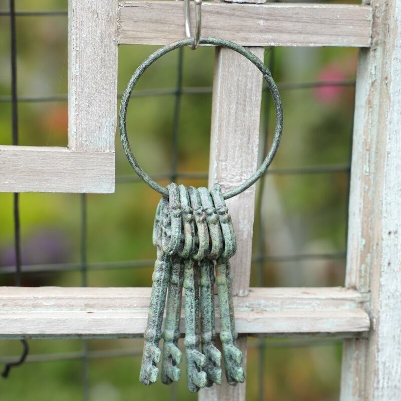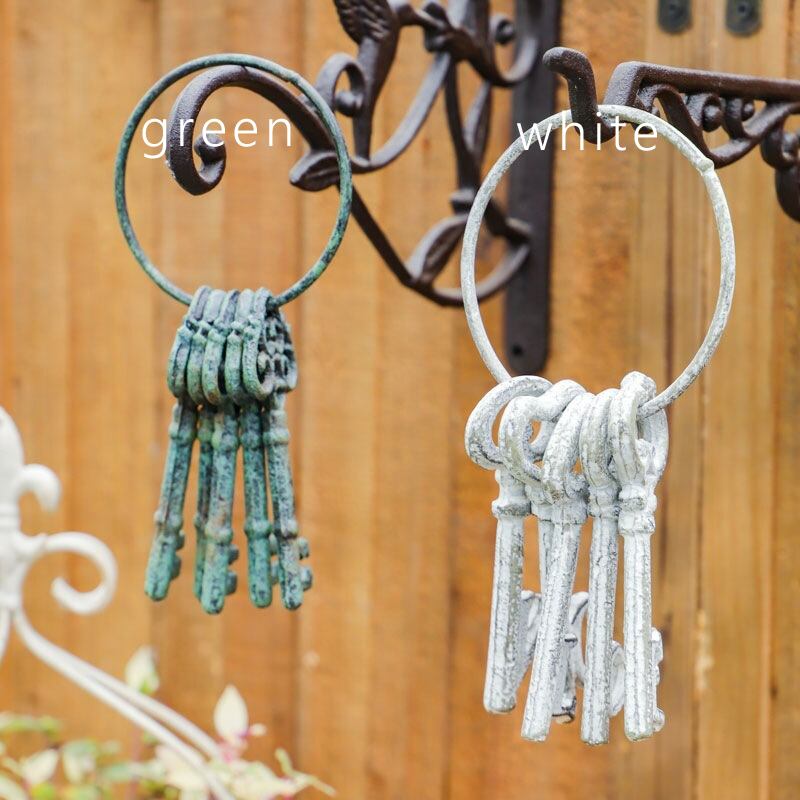 ガーデンオブジェ 鋳鉄 鍵 アンティーク調 ヴィンテージ調 ホワイト グリーン ガーデニング 雑貨 ガーデン雑貨 ガーデンインテリア ガーデン インテリア 庭の装飾 お洒落 おしゃれ 8-14