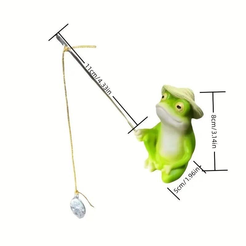 樹脂製でできたこのオブジェは、耐久性にも優れており、屋外の過酷な環境にも適しています。釣り竿を持ち、静かに水面を見つめるカエルの姿には、日常の喧騒を忘れさせる癒しの効果があるかもしれません。リラックスしたい日々や、植物とともに過ごすひとときをより豊かに彩ってくれることでしょう。