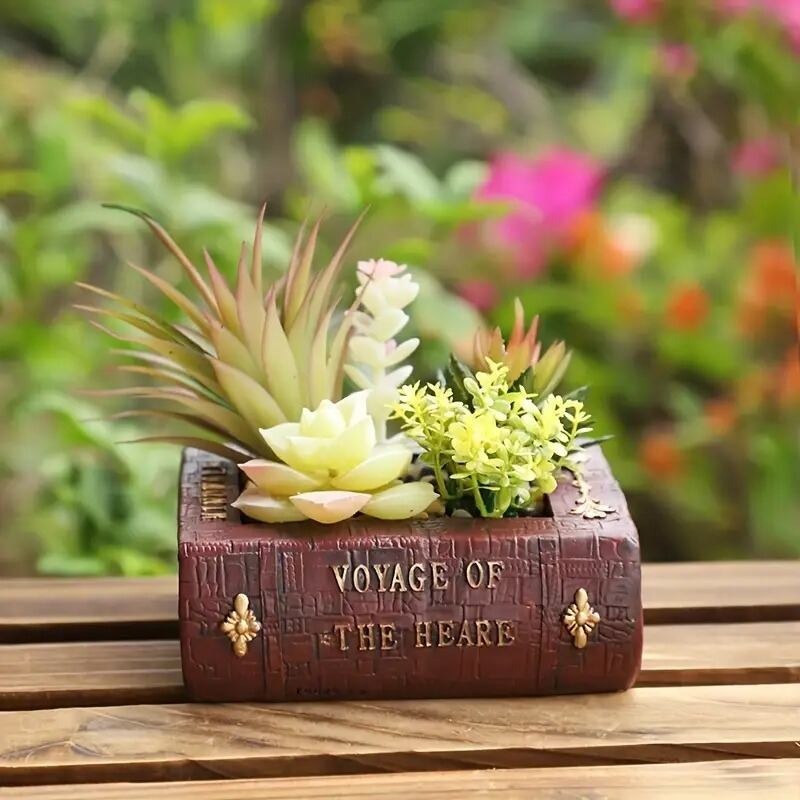 プランター 洋書風 樹脂 排水穴付き シック 赤 レッド 本 ブック型 ガーデニング 雑貨 ガーデン雑貨 ガーデンインテリア ガーデン インテリア 庭の装飾 お洒落 おしゃれ 4-7