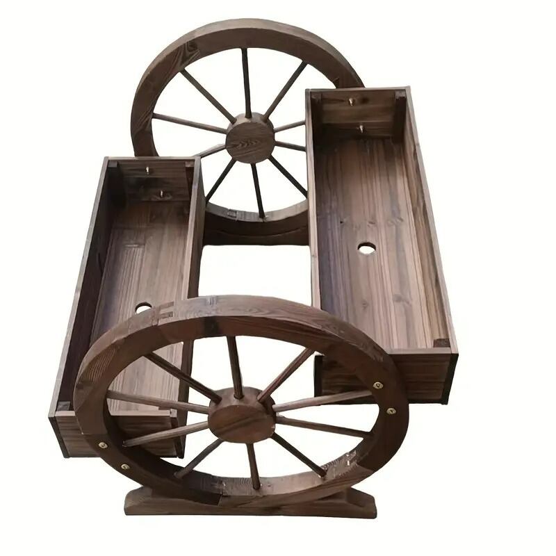 プランター 木製 2段 木目 鉢植え 植木鉢 ラック ダブルホイール付き ナチュラル ヴィンテージ調 ガーデニング 雑貨 ガーデン雑貨 ガーデンインテリア ガーデン インテリア 庭の装飾 お洒落 おしゃれ 4-7