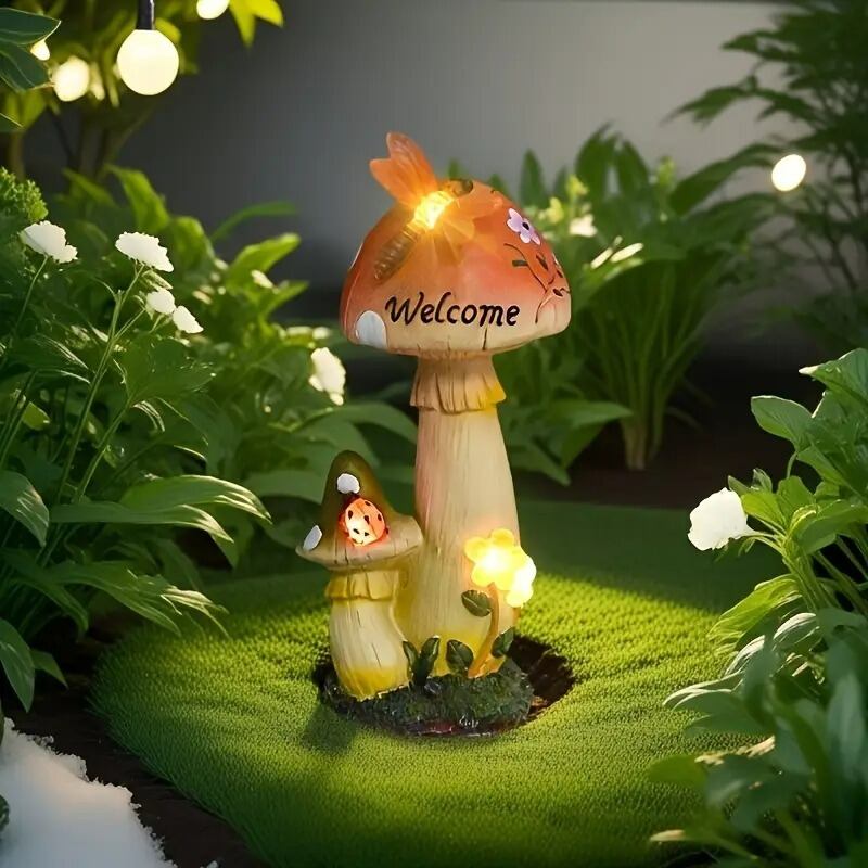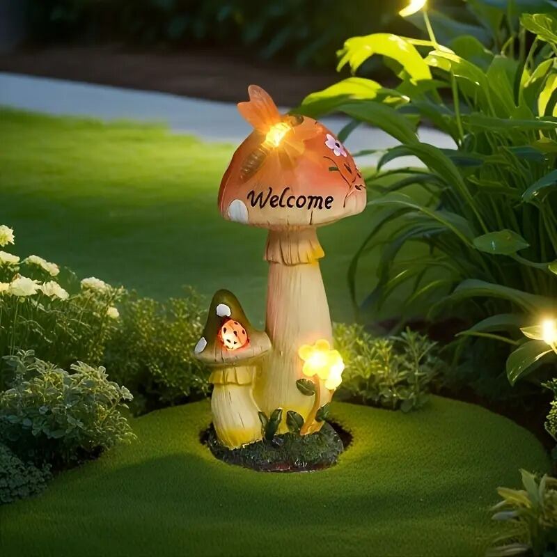 ガーデンライト きのこ ソーラー ウェルカムサインは、かわいらしいきのこデザインが特徴のソーラーライトです。夜になると、自動的に点灯し、優しい光で玄関や庭を明るく照らします。このウェルカムサインは、訪れる人々に温かいおもてなしの気持ちを伝えるのに最適です。また、太陽光で充電できるため、電源が不要で環境にも優しい一品となっています。