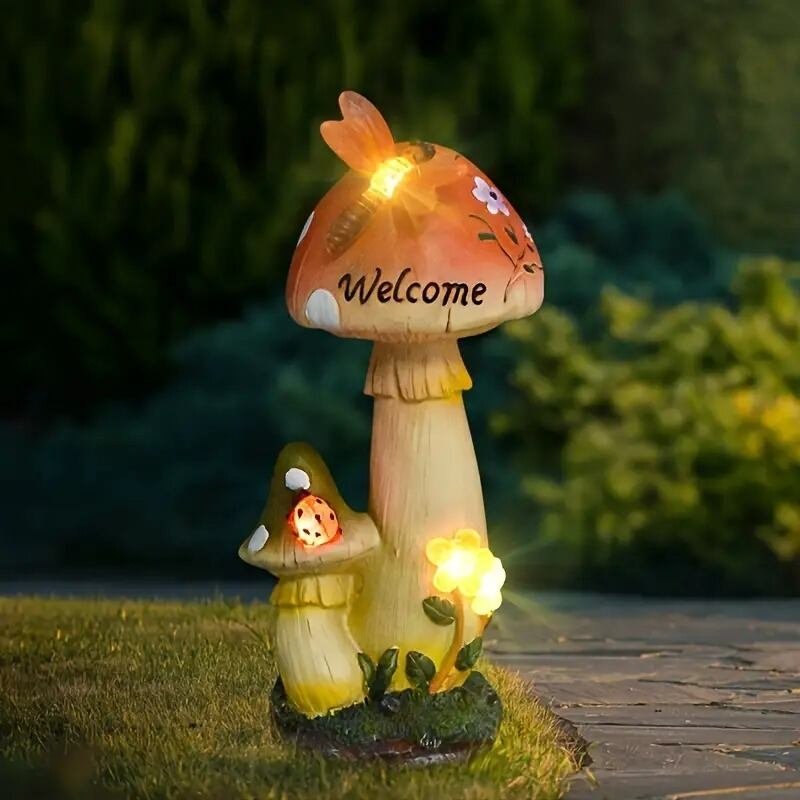 ガーデンライト きのこ ソーラー ウェルカムサイン 樹脂 かわいい トンボ てんとう虫 キノコ ガーデニング 雑貨 ガーデン雑貨 ガーデンインテリア ガーデン インテリア 庭の装飾 お洒落 おしゃれ 4-7