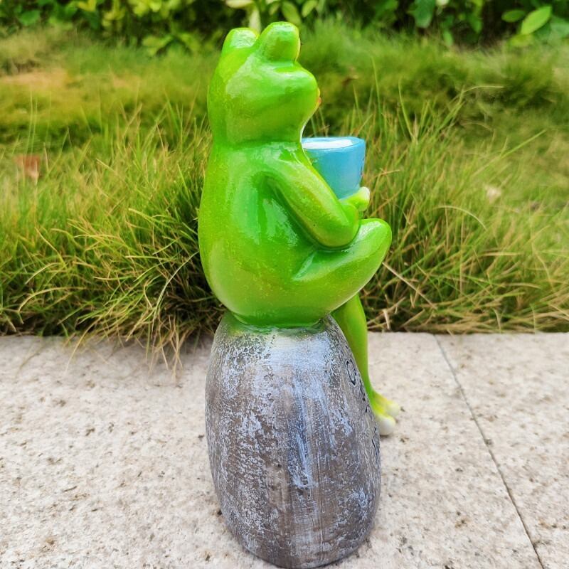 心和むユーモラスなデザインで、日常にちょっとした楽しみを加えてくれる存在です。このカエルは、リラックスしてコーヒーを楽しむ姿が、あなたのガーデンやお部屋に笑顔をもたらします。