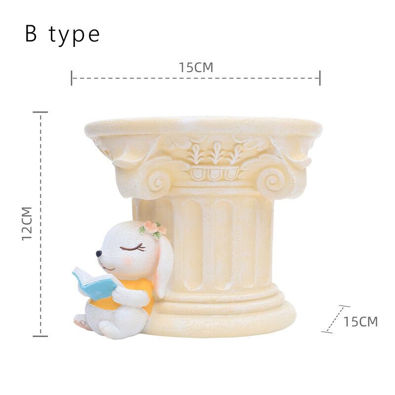 愛らしい動物のデザインとクラシカルなローマ柱スタイルが特徴のプランターです。どんな空間でも目を引くスタイルは、あなたのガーデニングライフをもっと楽しくしてくれることでしょう。